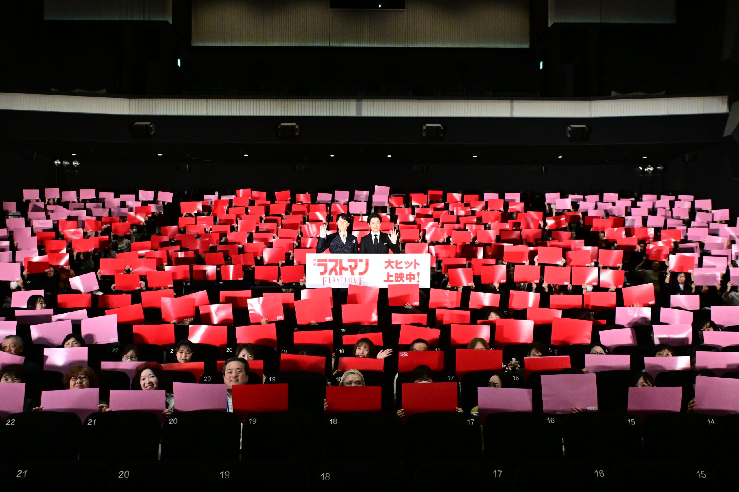 福山は『FIRST LOVE』というサブタイトルに触れて「最初は照れ臭かったけれど、人は互いに助け合って生きているという事を体現しているのが皆実さん。初恋は淡く、その人の人生を形作る経験であり、やはり人と人とはLOVEで出来ている。クリスマスイヴなのであえて言いますが、世界には愛が必要で愛に溢れている。それが今回の映画で表現出来ているのではないかと思います」と呼び掛けた。