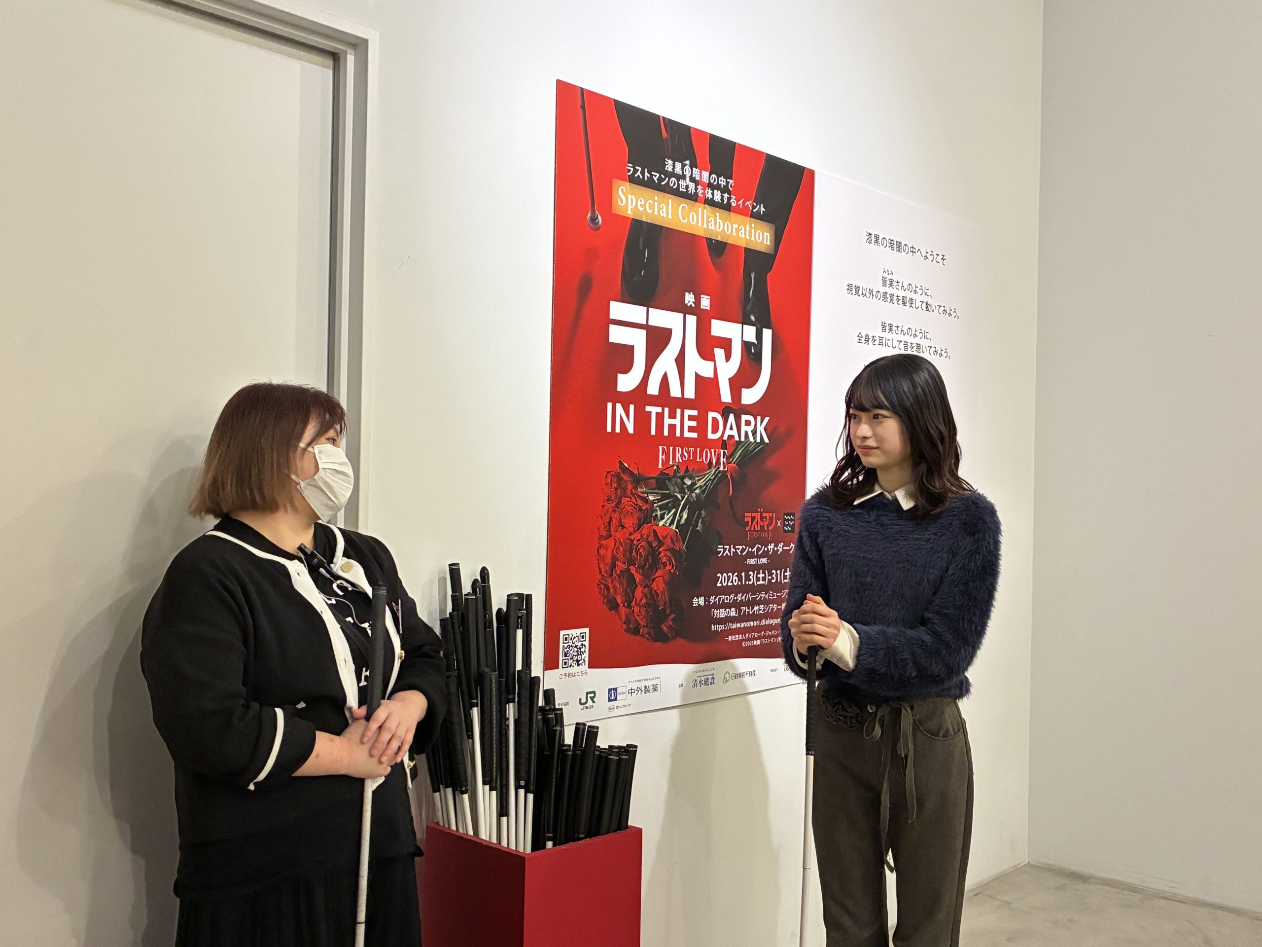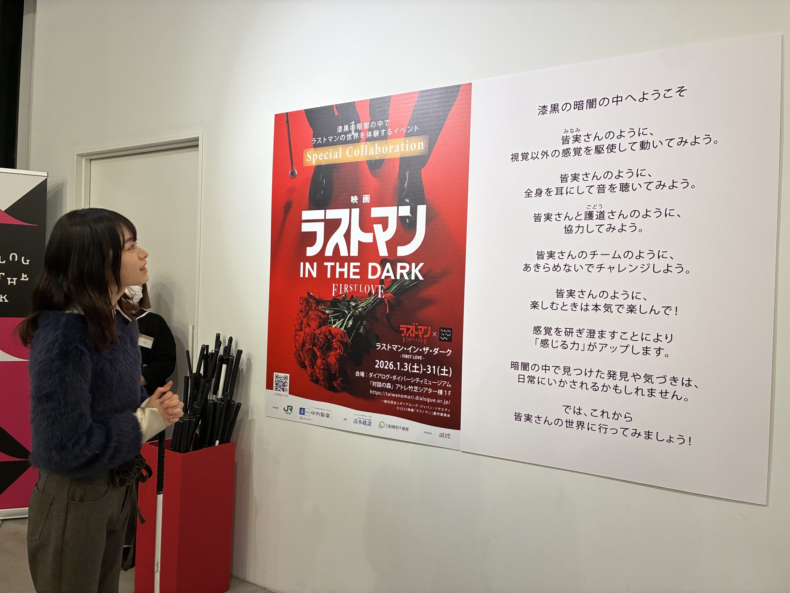 この度、映画公開を記念し2026年1月3日(土)〜31日(土)の期間限定で、「ダイアログ・イン・ザ・ダーク」とタイアップ企画を実施。暗闇で視覚以外の感覚を使って皆実の世界を追体験できる特別プログラム「ラストマン・イン・ザ・ダーク –FIRST LOVE-」を開催中。