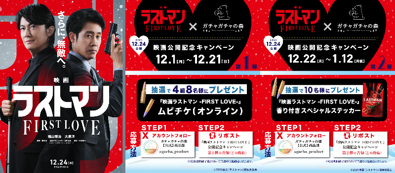 ガチャガチャの森の下記の店舗にて、キャンペーン期間中サイネージで『映画ラストマン -FIRST LOVE-』と12/28放映予定のスペシャルドラマの予告映像を放映します。
