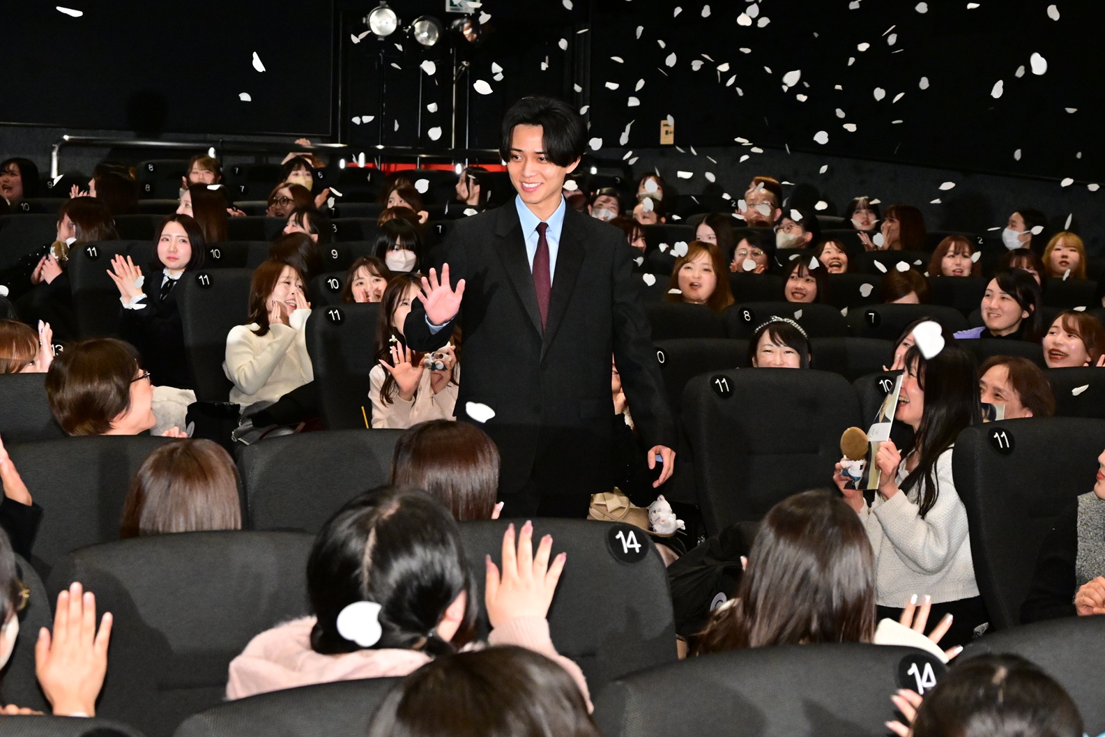 翌日、3月27日(金)の公開を前に、一足先に本作を鑑賞し余韻に浸る観客たち。豪華キャスト陣の登場を待つ中、キャスト陣が白い花吹雪が舞う会場を客席後方から華々しく登場し、多くのファンから大きな歓声が上がった。