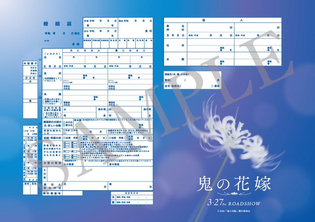 作品を象徴する"白い彼岸花”をモチーフにした特別な婚姻届です。