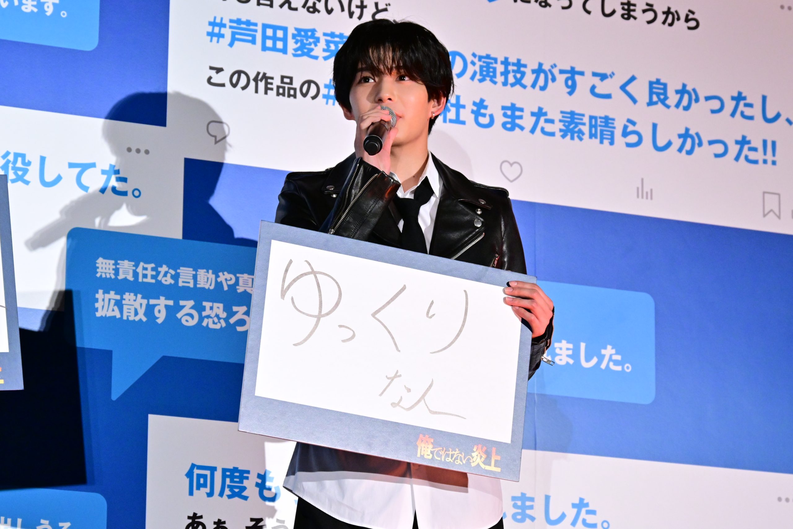 最後に山田監督は「本番は明日からです。SNSをテーマにした内容ですが、色々な世代の方に楽しんでいただけるはずです。最後まで止まらず飽きずに観ていただける映画になったと思います。SNSでつぶやきやすい内容だと思うので、炎上とは言わず大きなバズを作っていただきたいです」と大ヒットを祈願した。