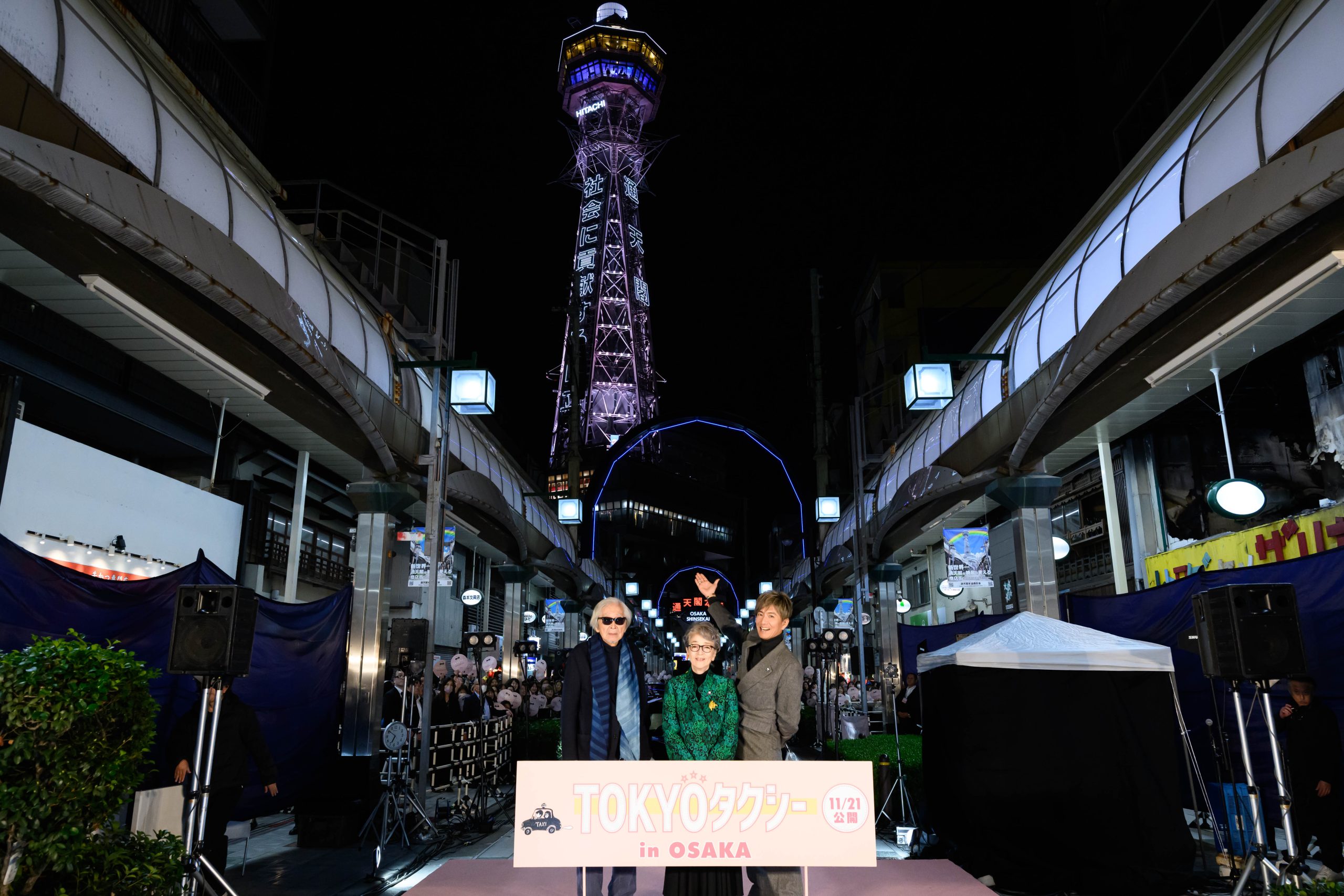 その後、会場を通天閣へ移し、タクシーセレモニーが開催された。大阪の観光名所である通天閣の麓から木村が劇中で使用したタクシーの助手席に倍賞を乗せ、沿道を埋め尽くした大勢のファンからの熱い大歓声を浴びながら、ステージまで走行。まるで劇中のシーンが再現されたかのような登場に、会場のボルテージは最高潮に!本作のイメージカラーであるピンクカーペットに到着すると、木村が倍賞をエスコートしながらステージへ。続けて山田監督も登壇し、会場は盛大な歓声と拍手に包まれた。